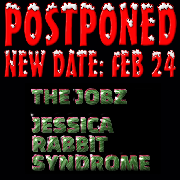 Crunch and glam from The Jobz and Jessica Rabbit Syndrome at Stage 33 Live starting at 6:30 PM or so on FEBRUARY 24 at 33 Bridge Street in Bellows Falls, VT. No cover, donations welcome.