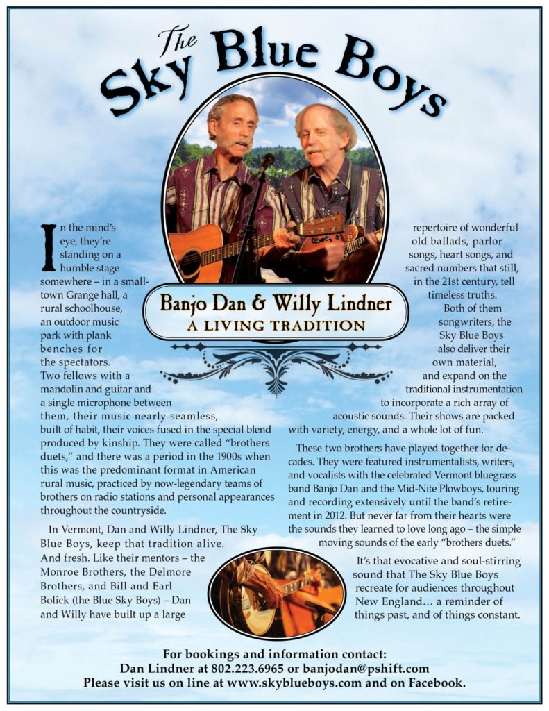 Willy and Dan have played together for decades. The clean, evocative sound of “The Sky Blue Boys” is a reminder of things past, and of things constant.