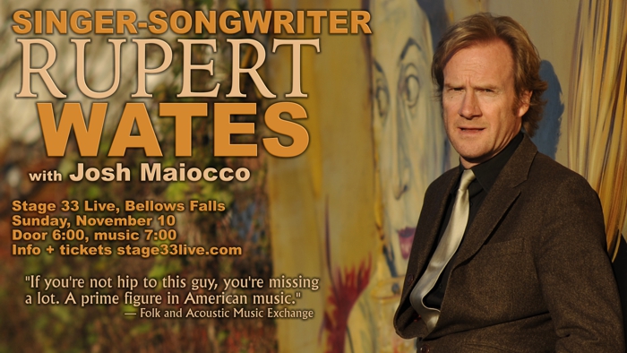 BELLOWS FALLS — England-born, Oxford University-educated Rupert Wates has released nine acclaimed full-length solo CDs. Since relocating to the USA, two tribute albums to his material have been made by musicians in Nashville and Los Angeles, and he’s won dozens of songwriting awards. He’s been a fulltime songwriter since the late ’90s, when he signed an exclusive publishing deal with London-based Eaton Music.
