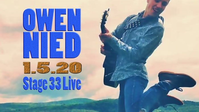 No opener, this is Owen’s canvas. 7:00 PM start on January 5 at Stage 33 Live, 33 Bridge Street in Bellows Falls, Vermont. Suggested $5+ donation at the door. The performance will be recorded and filmed.