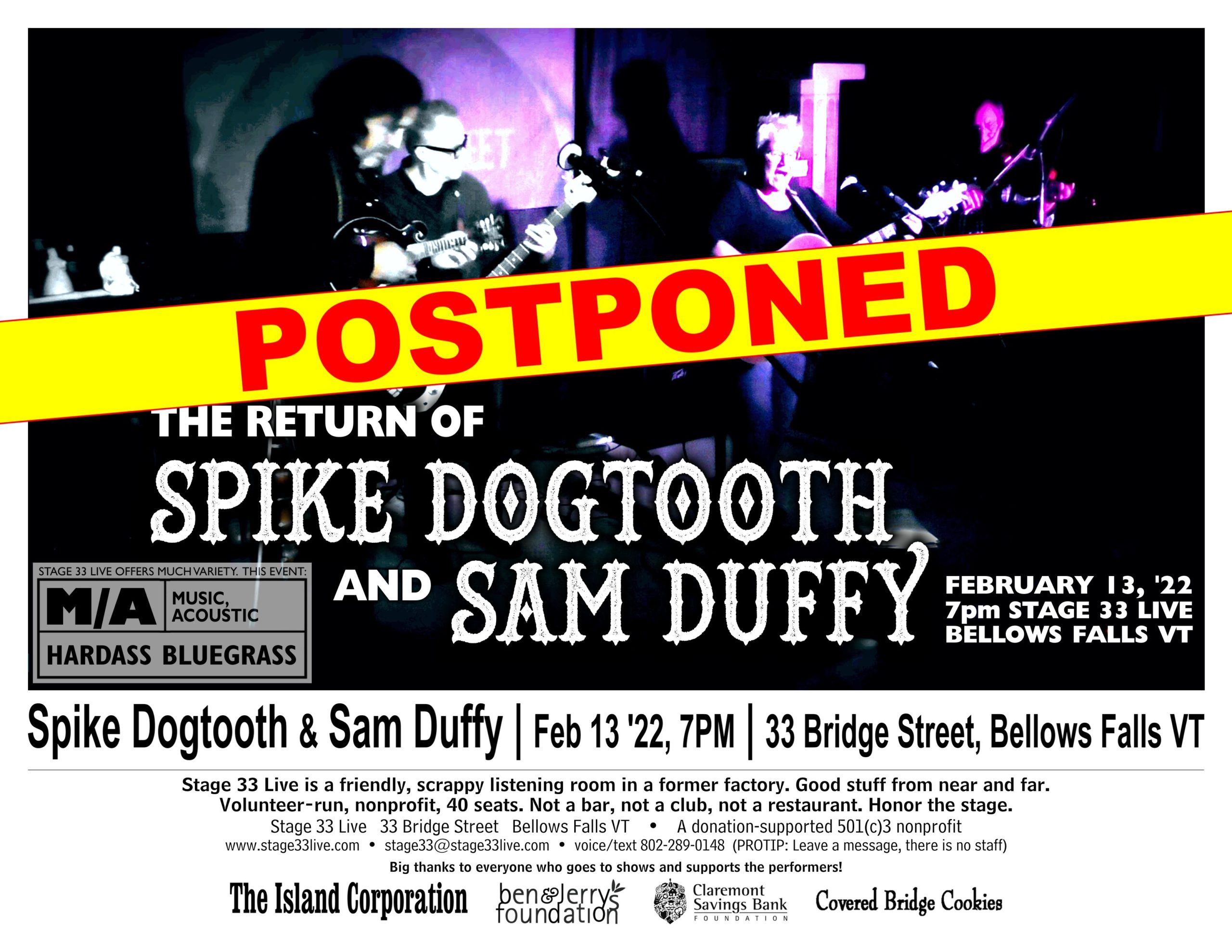 2/13/22: (POSTPONED) Spike Dogtooth with Sam Duffy